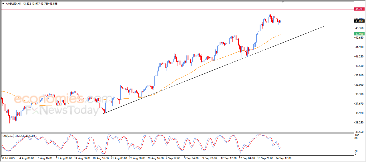 Economies.com的分析师今日最新观点:现货白银价格在上一交易日出现震荡走势,期间多次尝试获取看涨动能以支撑价格重启强势上涨格局。当前短期主要看涨趋势仍占主导,且价格沿支撑趋势线运行,同时得益于其维持在50日指数移动均线(EMA50)上方交易形成的动态支撑。此外,相对强弱指标已触及相对于价格走势的严重超卖区域,这显著增强了价格在短期内快速重拾看涨动能的概率。