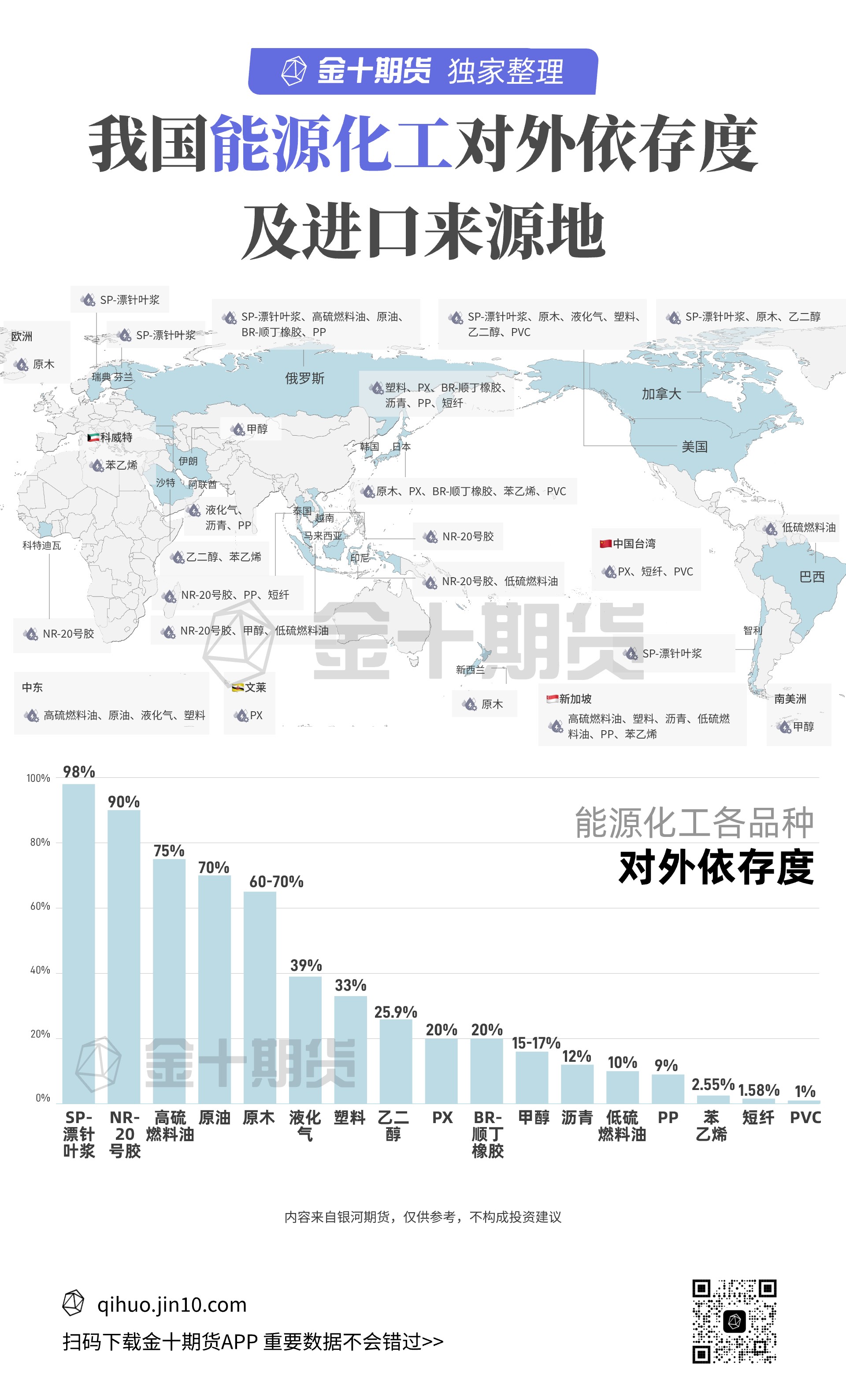 一图了解我国能源化工品种对外依存度 | 金十期货热图