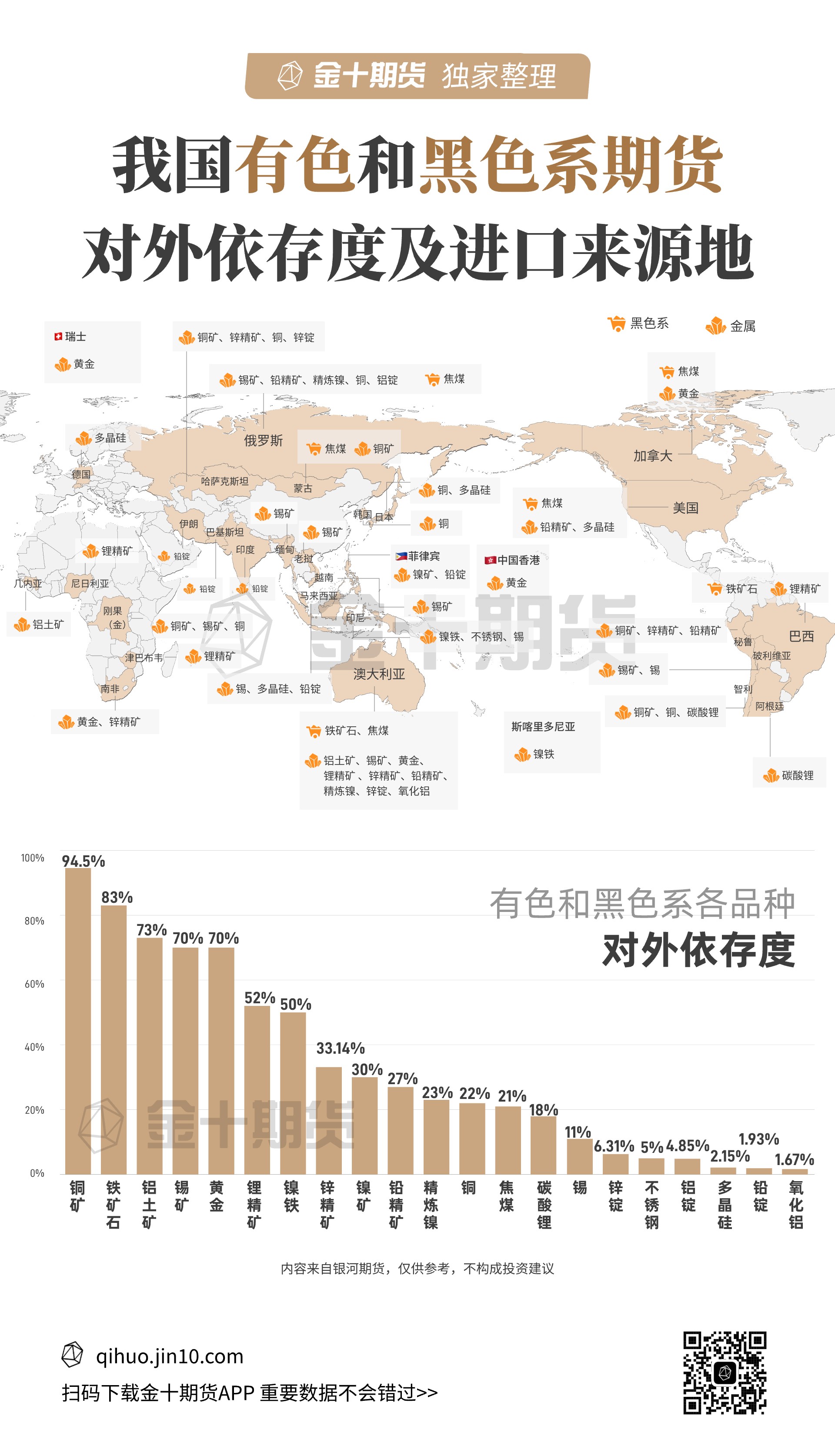 一图了解我国黑色、有色品种对外依存度 | 金十期货热图