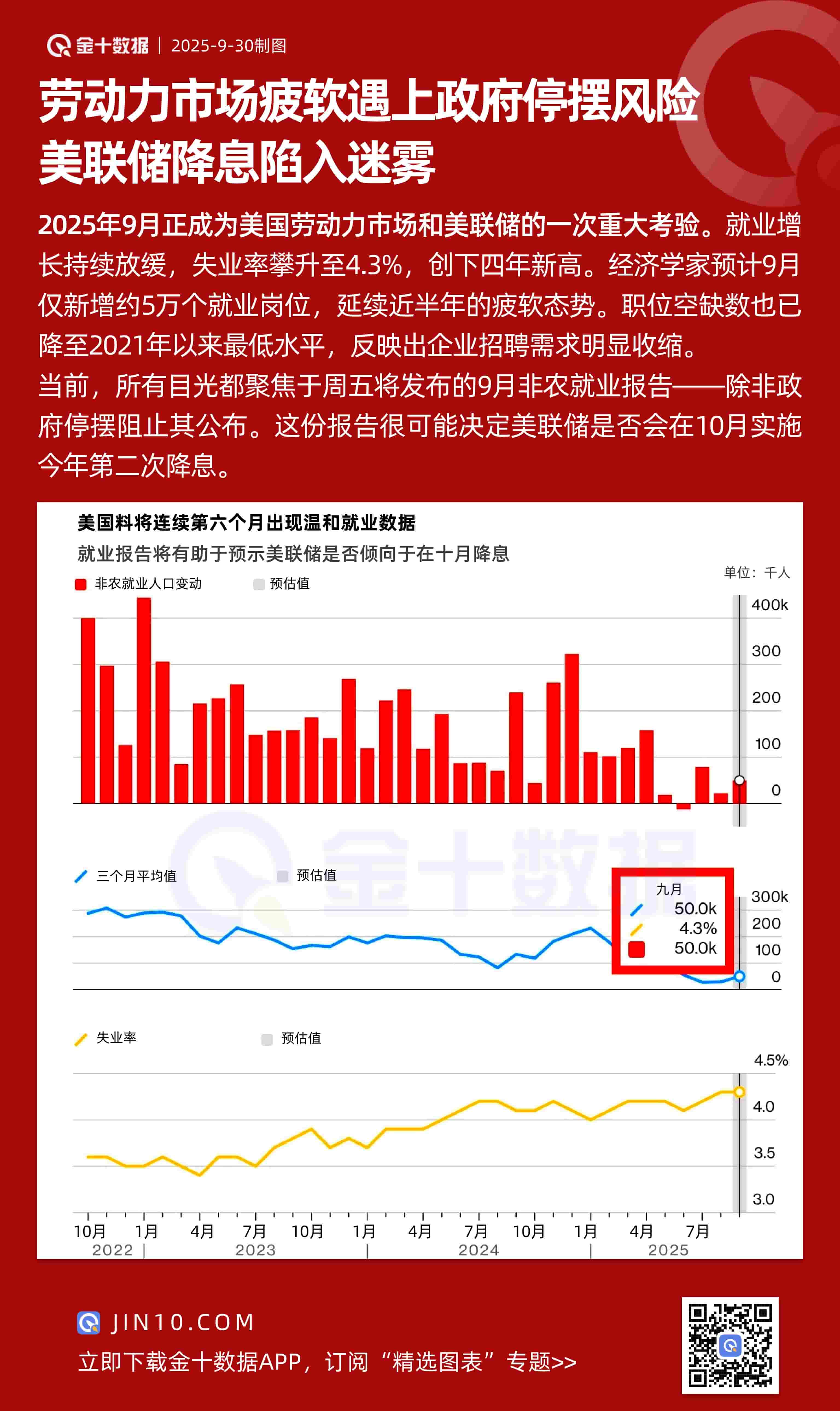 劳动力市场疲软遇上政府停摆风险,美联储降息陷入迷雾