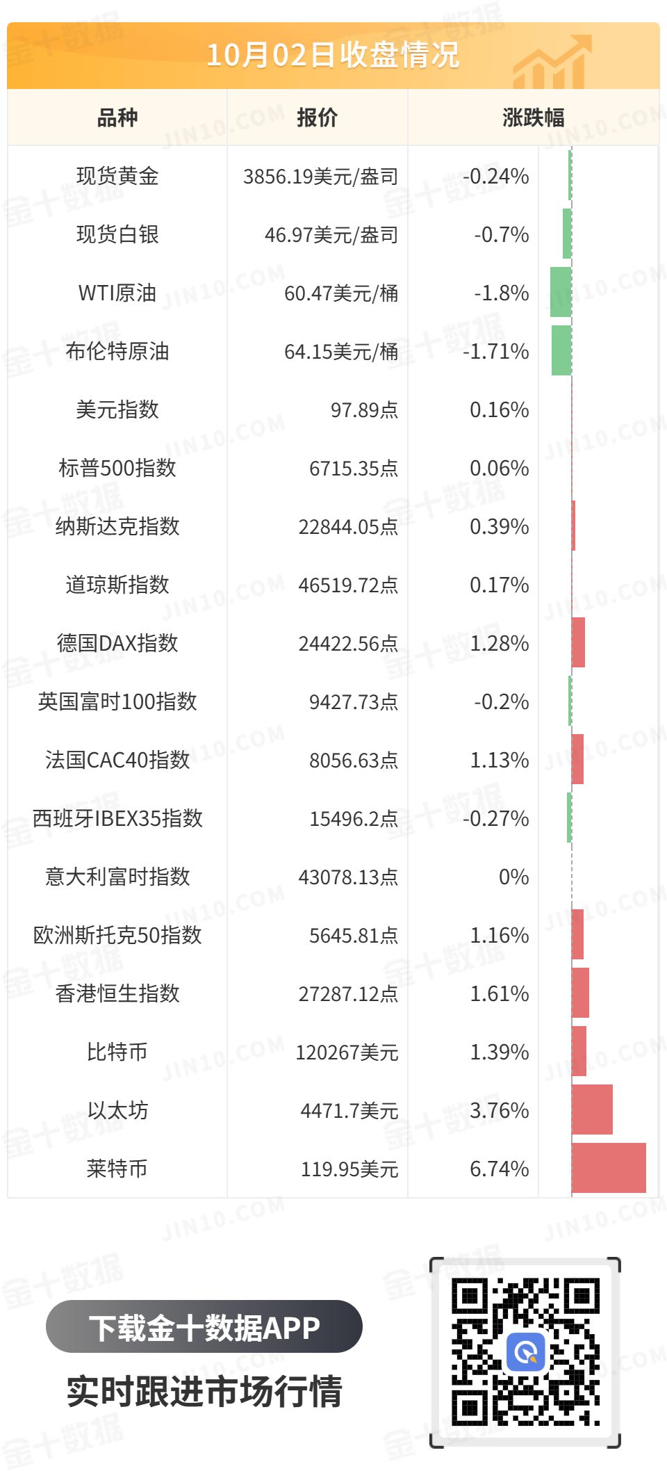 1、受美国政府停摆影响,美国至9月27日当周失业金申请人数、美国工厂订单月率及耐用品订单月率均延迟公布。但对于9月非农数据,美媒报道称劳工统计局或已做好发布准备,参议员沃伦呼吁政府周五“如期”发布非农数据。