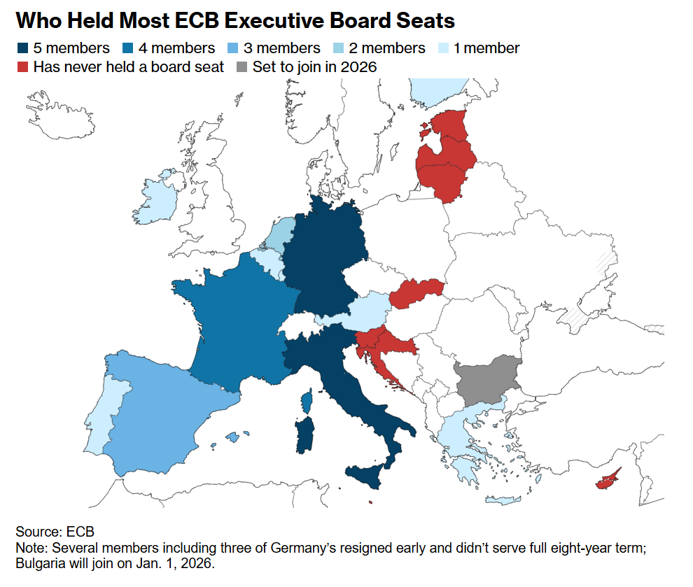 2027年底,施纳贝尔的不可续任任期结束后,其执行委员会席位将空缺。若德国与法国此前未能获得心仪职位,该席位可能成为两国的“备选方案”;此外,也可能由小国获得。