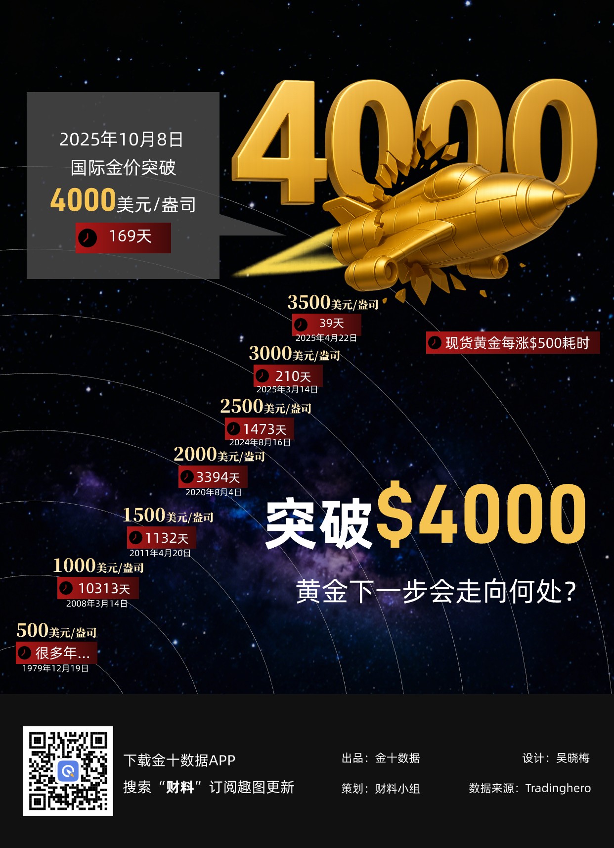 金十梗图:一年两破“千元”大关口,国际金价突破每盎司4000美元|财料