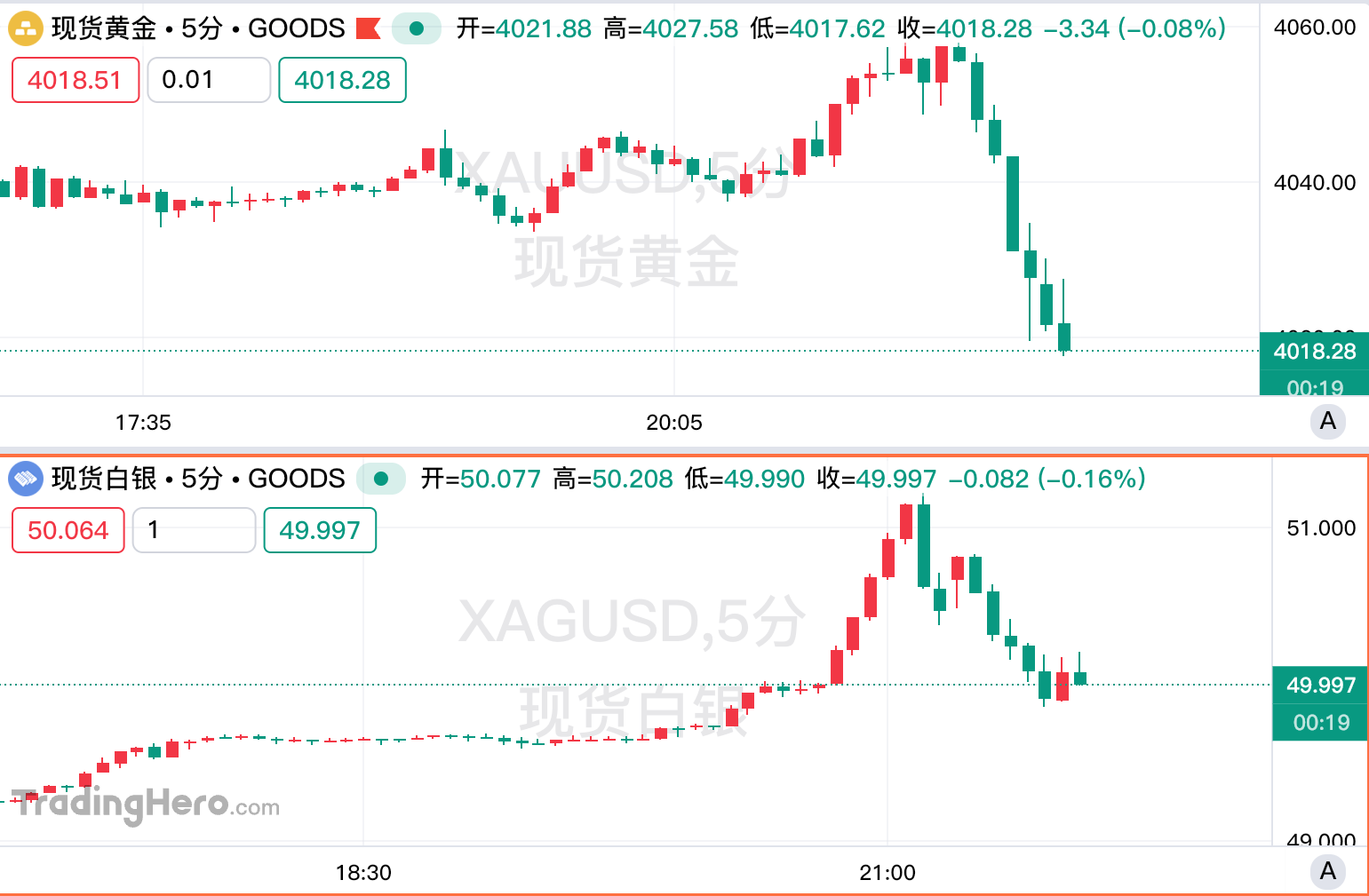 周四美盘,现货黄金短线跳水约30美元。受到黄金破纪录涨势、不断增长的投资需求以及供应短缺的推动,此前白银价格创下历史新高,但随后跌回50美元下方。