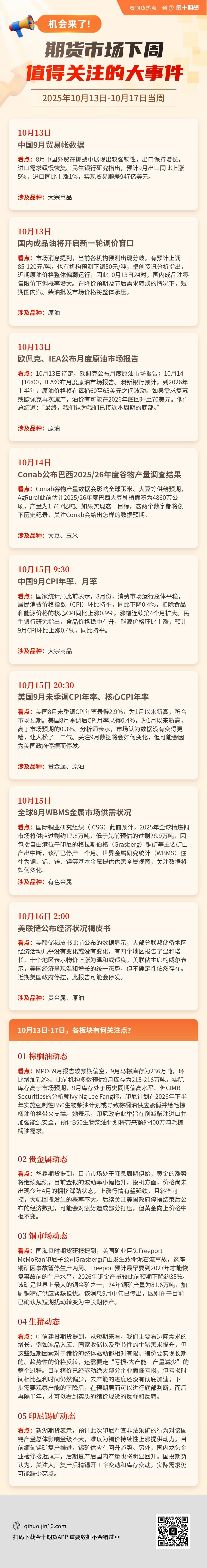 3. 10月13日待定,欧佩克公布月度原油市场报告;10月14日16:00,IEA公布月度原油市场报告。