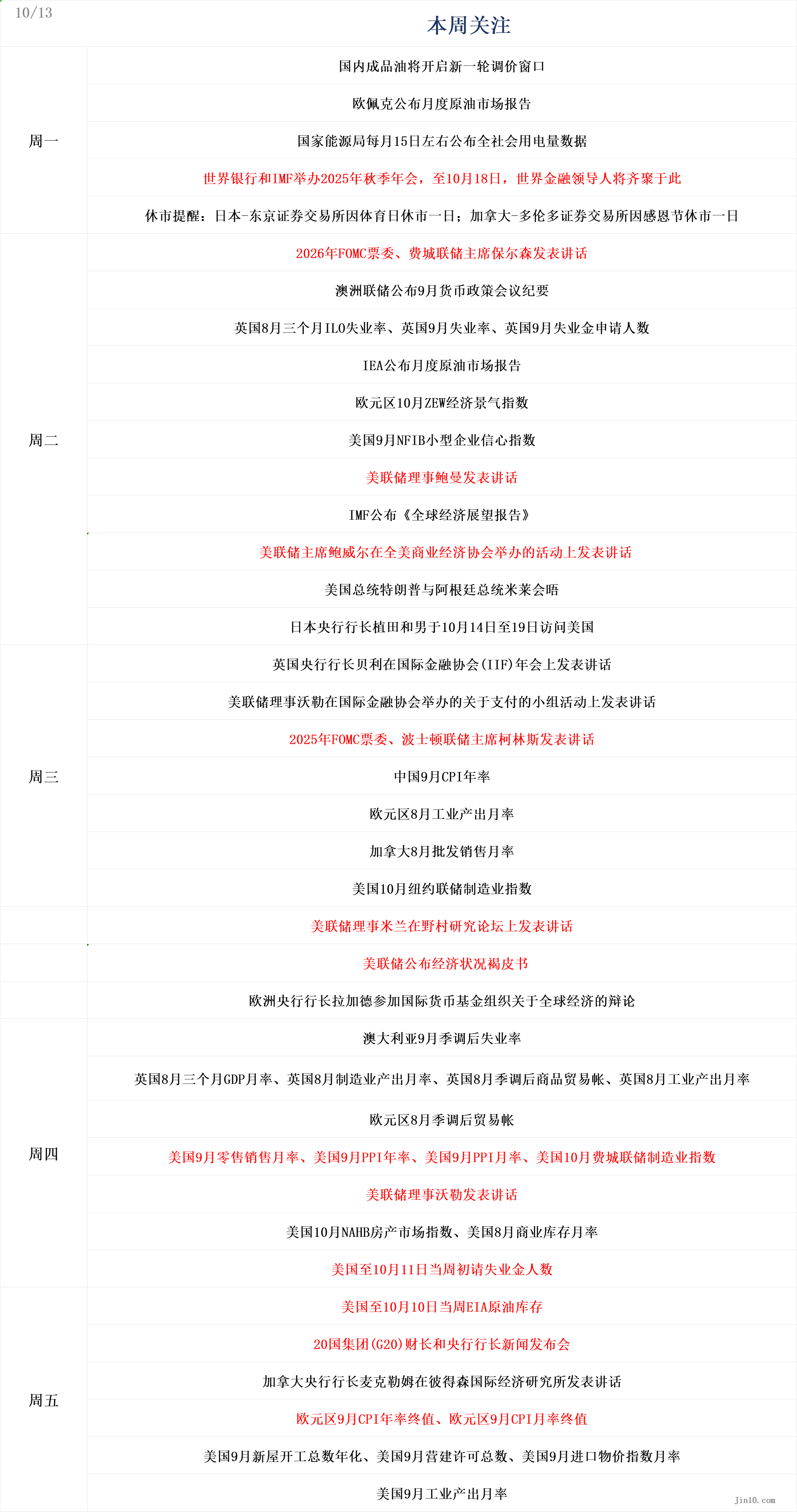 以下是新的一周里市场将重点关注的要点(均为北京时间):