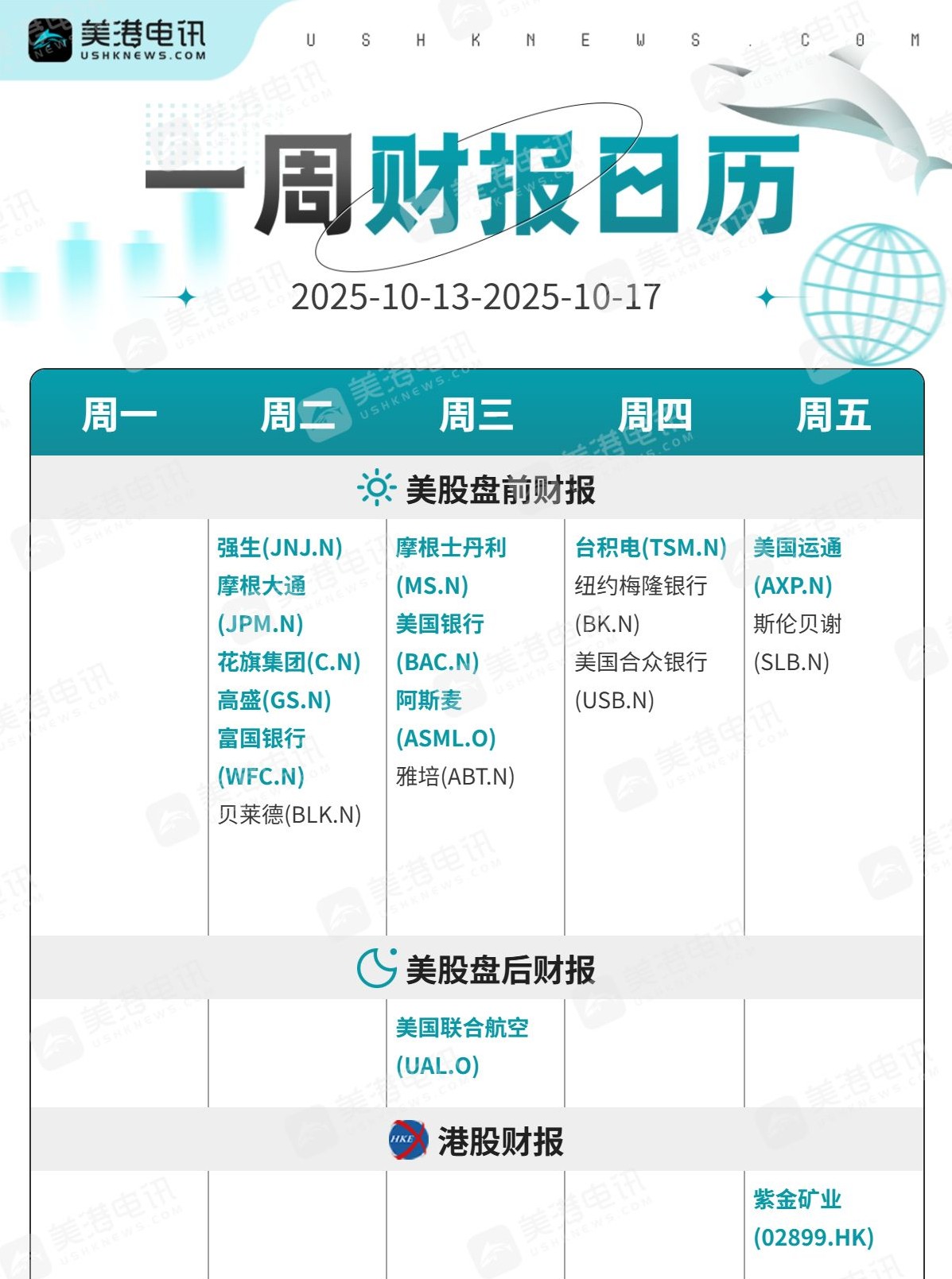 由于美国政府关门中断了部分关键宏观数据的发布,投资者将在未来一周关注各大银行的季度盈利报告,以帮助衡量美国经济的健康状况。摩根大通(JPM.N)、花旗集团(CN)、高盛(GS.N)和富国银行(WFC.N)是周二公布财报、拉开财报季序幕的主要银行之一。美国银行(BAC.N)和摩根士丹利(MS.N)则将于周三盘前公布业绩。