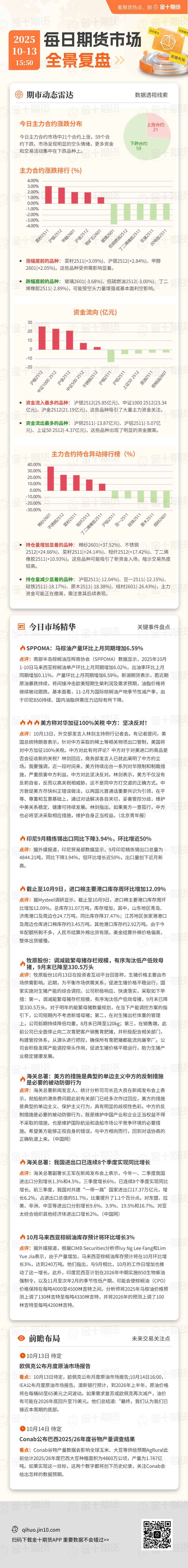 贵金属早间偏强运行,午后涨幅双双扩大,收盘沪银上涨2.84%,沪金上涨1.99%。美联储年内继续降息预期较强,美国联邦政府继续停摆叠加全球贸易局势不确定性加剧,市场避险情绪回升,贵金属重新走强。