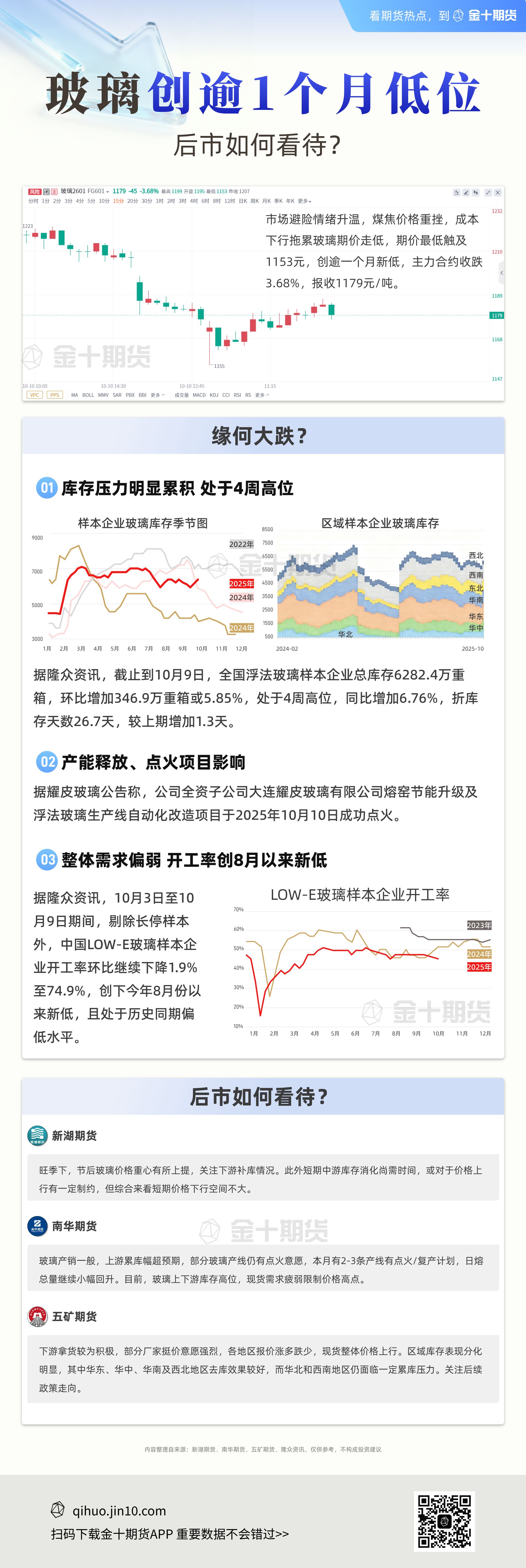 玻璃期价最低触及1153点,创逾一个月新低,机构如何看待后续价格走势?一图看懂。