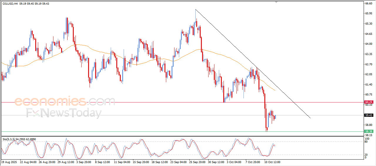 Economies.com的分析师今日最新观点:布伦特原油期货价格表现出震荡走势,短期内空头趋势占据主导地位,且价格沿着陡峭的下行趋势线运行,这一走势得到了趋势线的支撑。同时,由于价格持续运行在EMA50均线下方,负面压力持续存在,进一步降低了短期内价格反弹的可能性。此外,相对强弱指标在超卖状态释放后也出现了负面信号,为未来一段时间内进一步下跌打开了空间。