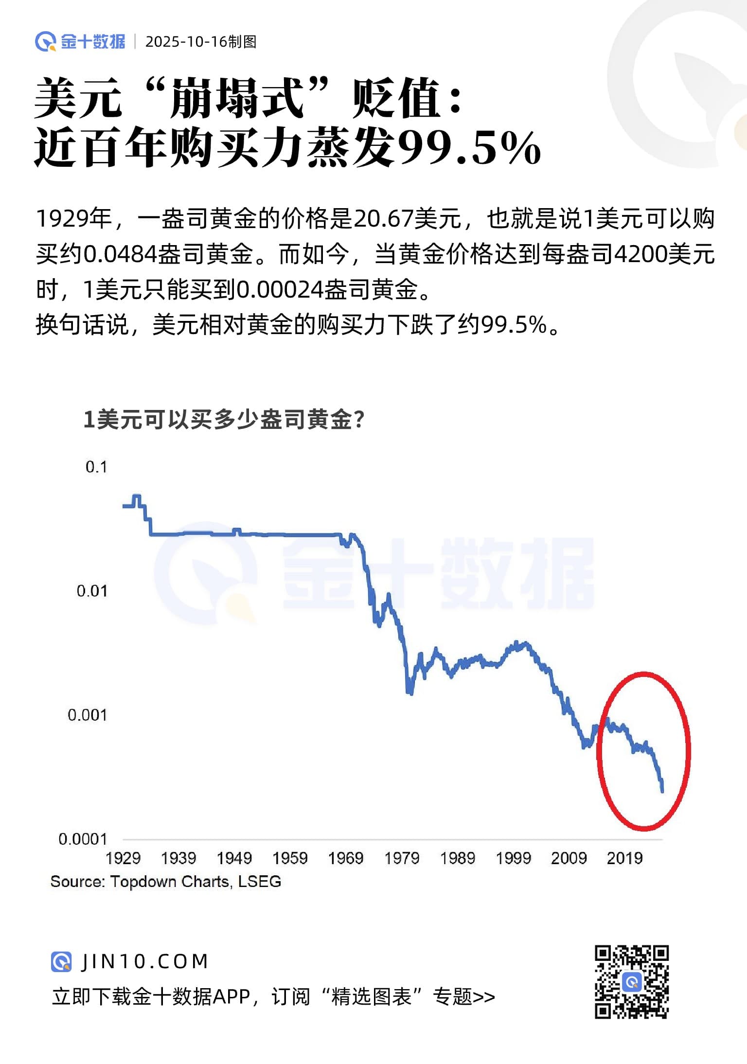美元“崩塌式”贬值:近百年购买力蒸发99.5%