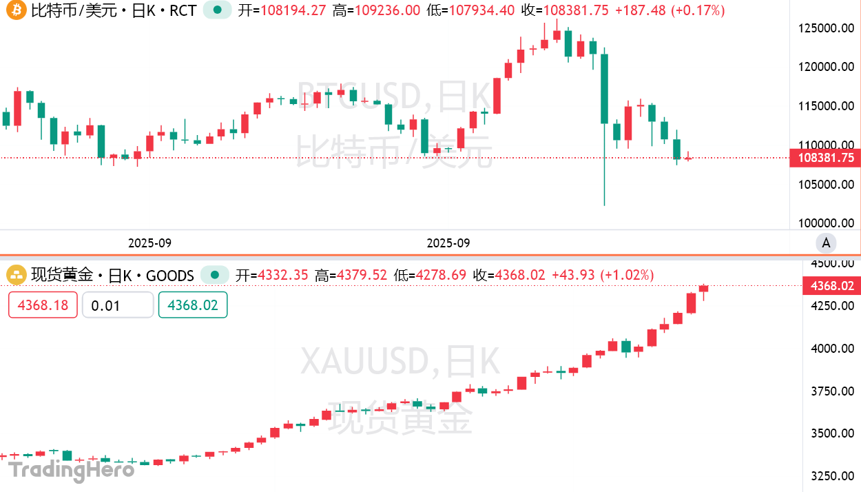 这种最初被塑造为市场动荡对冲工具——区块链时代的“数字黄金”——的加密货币,在周五早间趋于稳定,根据彭博汇编数据,其在跟随全球股票与信用资产下跌后徘徊于10.8万美元附近。