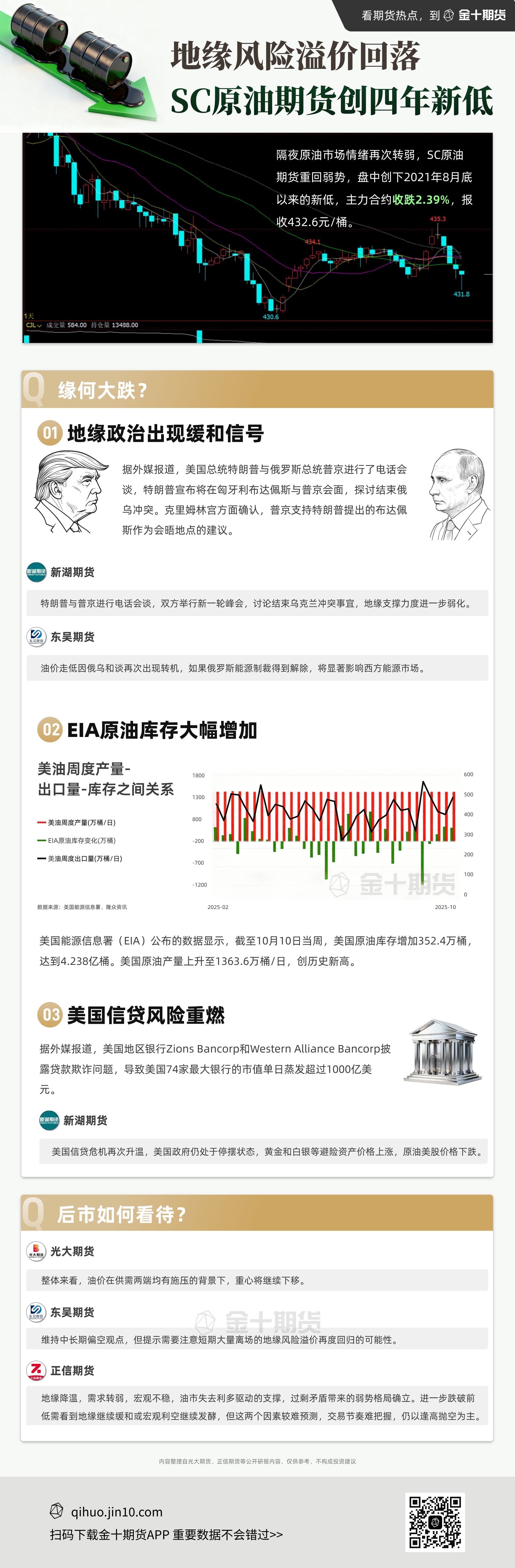 地缘风险溢价回落,SC原油期货创四年新低! | 金十期货热图