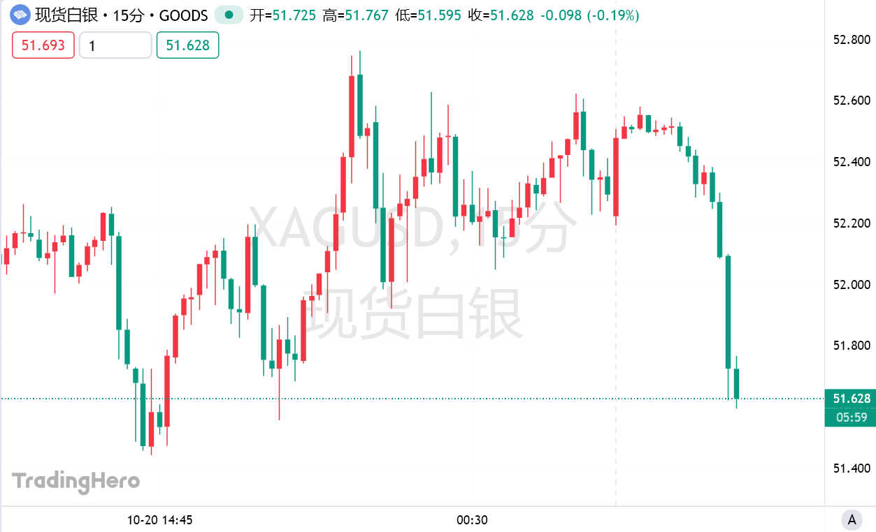 由于伦敦市场供应紧张与金价飙升及印度强劲买需同时发生,基准白银价格上周五触及每盎司54.47美元的历史新高,周一则回落至52美元下方。周二截至发稿,现货白银跌破52美元/盎司,日内跌超1%。