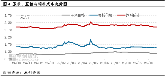 饲料原料价格或大致走稳。玉米方面,预计今年四季度北方六港的玉米库存量及累库速度将明显低于去年同期水平,一定程度上有利于缓解市场看跌情绪,降低新粮上市对四季度供应端产生的压力。豆粕方面,受外部环境影响,豆粕供应量以震荡运行为主,行情涨跌互现。整体而言,饲料原料价格存小幅涨跌调整,大局仍维持稳定。