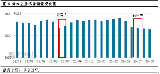 根据前期鸡苗销量估算,11月份进入产蛋期的蛋鸡应为7月补栏的鸡苗,此阶段鸡苗销量环比减少1.89%,而11月出栏的老母鸡是2024年6-7月份补栏的鸡苗,此时间段鸡苗销量减少,因此,11月份待出栏老母鸡不多。综合补栏量、出栏量和存栏基数,预计11月份在产蛋鸡存栏量或小幅反弹,鸡蛋供应充足。需求方面,11月份是传统的需求淡季,无节假日等因素拉动终端需求,肉类等其它动物蛋白价格低位,鸡蛋需求量暂无增长动力。综上所述,11月份全国鸡蛋供应量仍维持高位,需求量难增难减,鸡蛋市场仍存一定供需矛盾,价格或维持低位,月内价格或在2.70-3.00元/斤震荡调整。