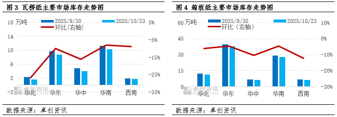 从供应端来看,市场供应量或窄幅增加。生产方面,纸厂目前暂无新的停机检修通知,纸企开工预计多数维持平稳,开工积极性或有所提升,预计11月瓦楞及箱板纸市场供应量小幅增加,原料废纸供应量偏少,纸企库存增幅或有限。