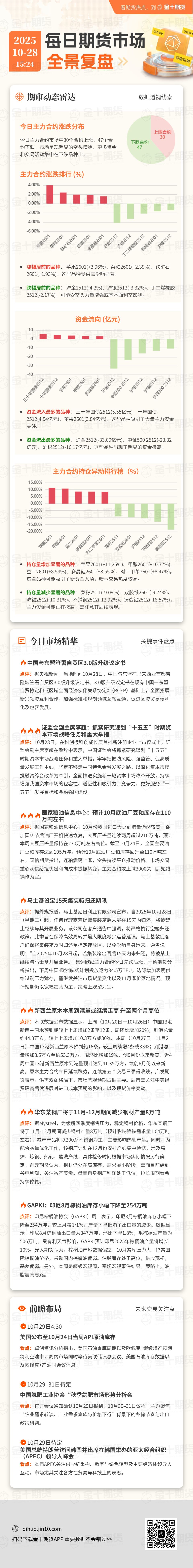 东吴期货认为,上周四中全会会议公报内容重点指向高质量发展,对传统钢铁需求暂无利好。2025年金融街论坛年会将于10月27日至30日在北京举行,主题为创新变革重塑下的全球金融发展。中美经贸谈判消息反复,近两日消息面有所缓和,但属于短期利好的taco交易。产业端今日传闻唐山地区高炉限产或有加严,本周钢材数据转好,则黑色系最大的利空驱动矛盾有所减弱,钢厂主动降品叠加唐山等重点地区环保限产使得铁水下降,则成材具备反弹空间,关注金融街论坛会否有政策公布。