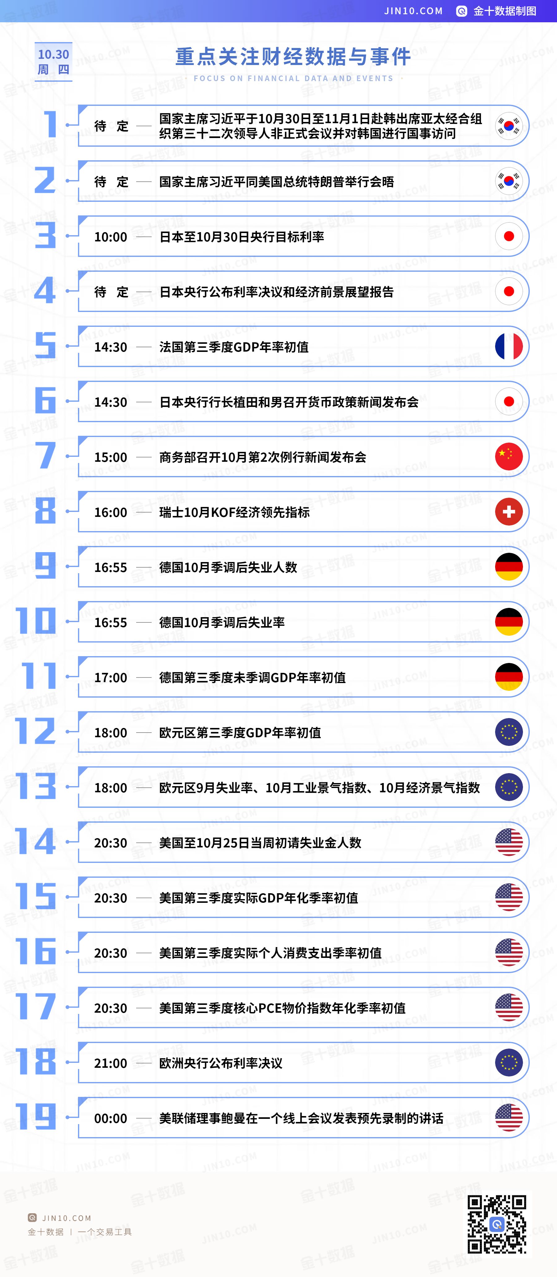 ☆待定,日本将公布至10月30日央行目标利率,市场预期该行将按兵不动;
