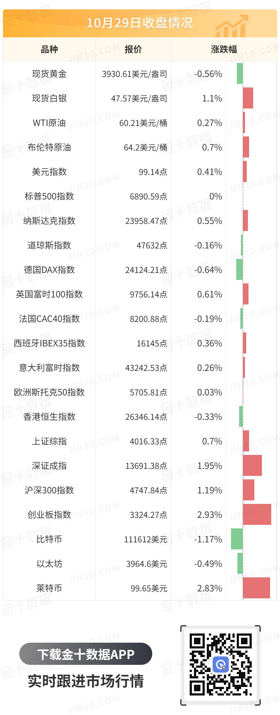 尽管美联储如预期降息25个基点,但市场消化了鲍威尔就未来政策路径发表的评论。现货黄金回吐日内所有涨幅,最终收跌0.56%,报3930.61美元/盎司;现货白银涨幅收窄,最终收涨1.1%,报47.57美元/盎司。