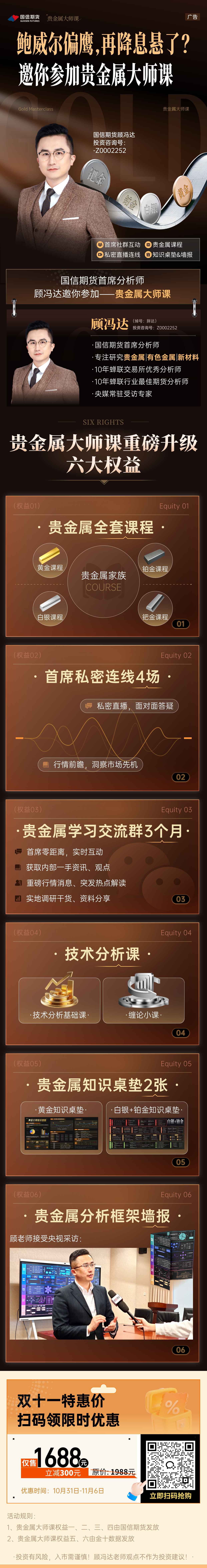 加入贵金属大师课,直击贵金属大行情!享六大重磅权益:
