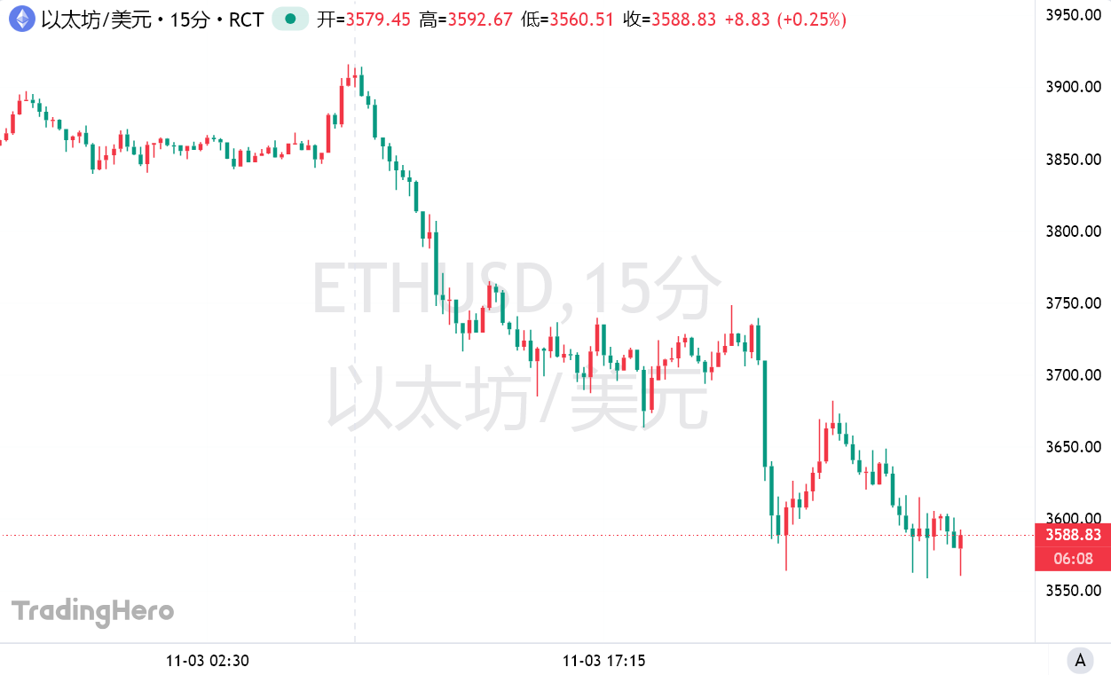 周一以太坊一度下跌9%,跌破3600美元的关键支撑位,较8月22日创下的4885美元高点下跌了约25%。