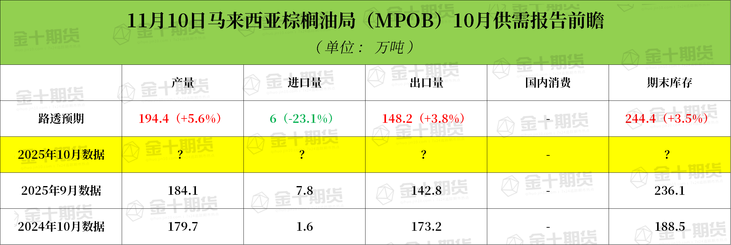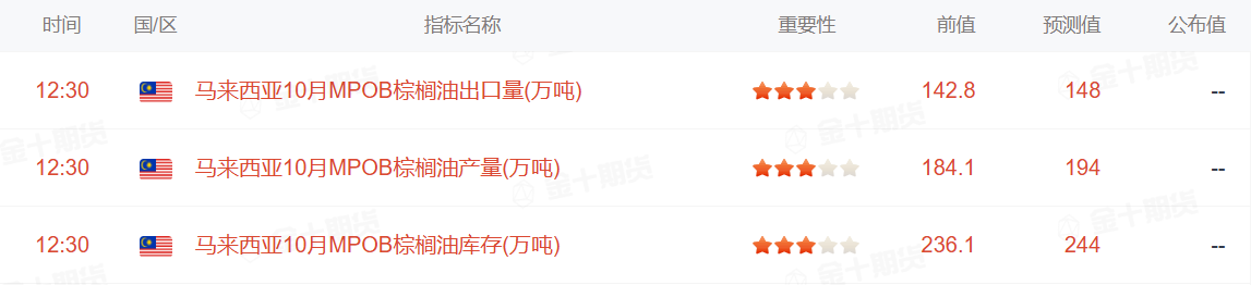 马来西亚棕榈油局(MPOB)将于北京时间11月10日(周一)中午12:30发布10月份马棕油供需数据。