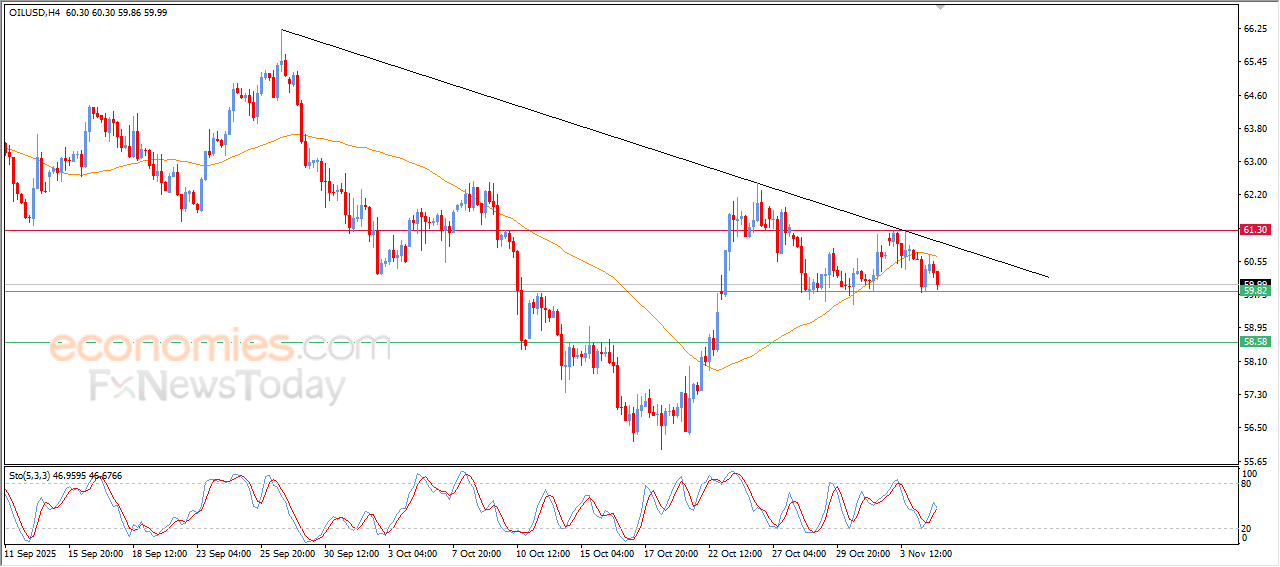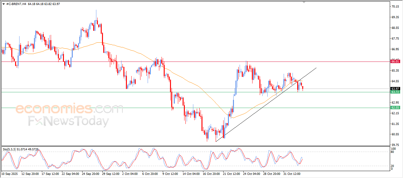 WTI原油期货在上一个交易日下跌,受到持续低于EMA50的下行压力影响,这加强了短期内主要下跌趋势的主导地位,并且其走势与支撑该下跌趋势线的趋势线一致。注意到在超卖状态解除后,相对强弱指标开始出现负交叉,这增加了价格的下行压力,并增加了在接下来的交易中延续下跌行情的可能性。
