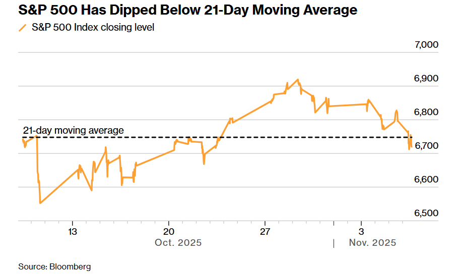 市场对人工智能(AI)领域数十亿美元投资能否获得回报的疑虑,叠加仍处于高位的股票估值,导致标普500指数(SPX)周四跌至6720.32点,创两周以来最低水平。图表观察人士表示,从当前点位来看,50日均线6665点正成为一道主要防线。