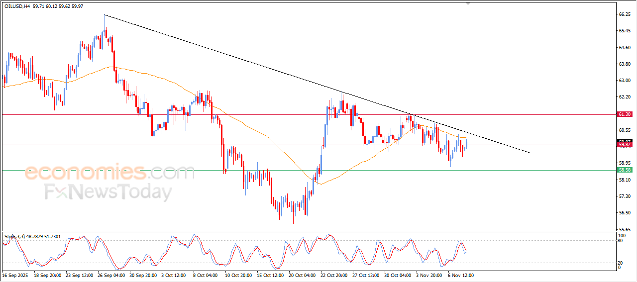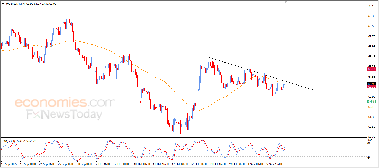 布伦特原油期货价格在上一交易日盘中表现出谨慎的上涨走势,主要受到相对强弱指标(RSI)出现积极信号的支撑。在此前,价格已消化了超买状态,并触及其50日指数移动均线(EMA50)阻力位。在主要多头趋势主导下,且短期内价格沿着次级趋势线运行,这在一定程度上降低了未来一段时间内价格进一步反弹的可能性。