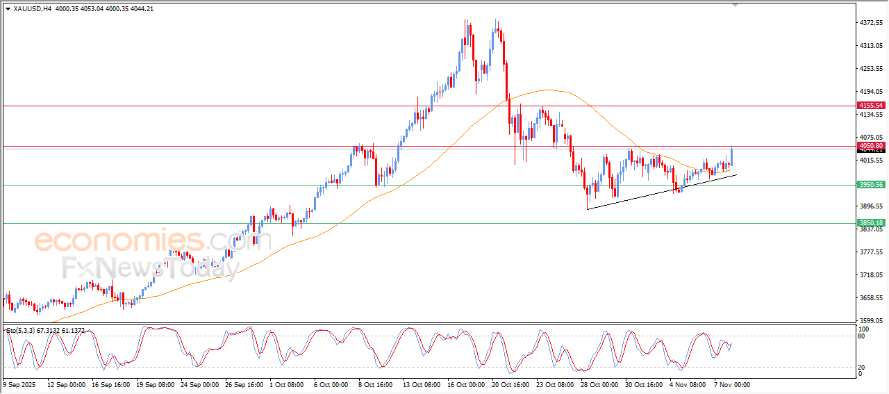 现货黄金在上一交易日盘中录得明显的上涨,强势突破了4,050美元的关键阻力位,该位置正是我们此前分析中提及的潜在目标。本轮积极的表现进一步巩固了价格在EMA50均线上的稳定性,为现货黄金持续扩大利润提供了额外的动能。