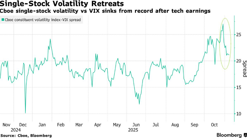 “追涨需求将个股与指数波动率差值推至极端水平,”桑杜表示,“随着财报季落幕,这一现象正开始逆转。”