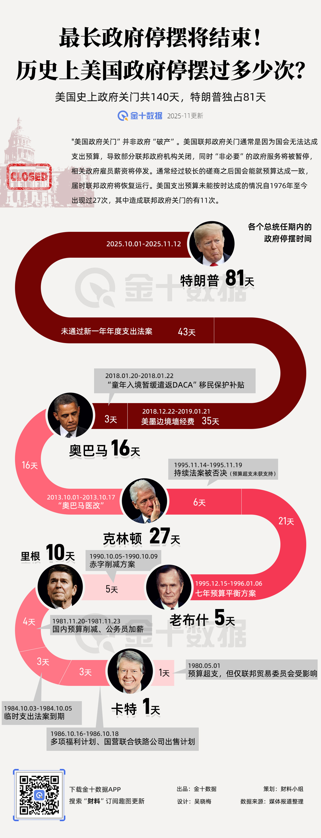 11-13 10:43 43天最长停摆结束!美国历史上有过多少次政府关门?|财料