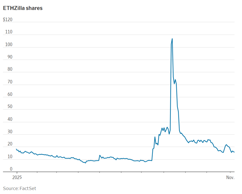 这曾是今年大半年里的“首选交易”:卖出股票或借款,再将资金大举投入比特币、以太坊及其他加密货币。投资者推高了这些“加密货币财库公司”的股价,将其视为放大波动剧烈的加密货币市场押注收益的工具。