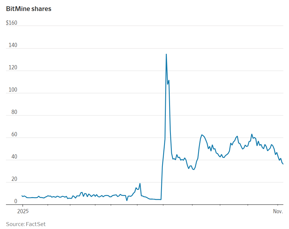 BitMine Immersion Technologies是一家大型以太坊财库公司,得到蒂尔支持,由华尔街资深策略师汤姆·李(Tom Lee)运营,该公司股价过去一个月下跌逾30%。