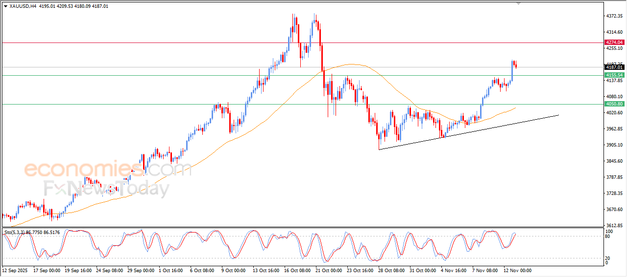 Economies.com的分析师今日最新观点:现货黄金价格在上一交易日盘中出现回落,处于强劲上涨后获利回吐的阶段。目前,金价正试图积聚新的上行动能,以助力后续行情的进一步上涨。本轮回调发生在突破关键阻力位4155美元之后,该位置正是我们此前预期的主要目标位,这也显示出短期内多头行情依然占据主导地位。