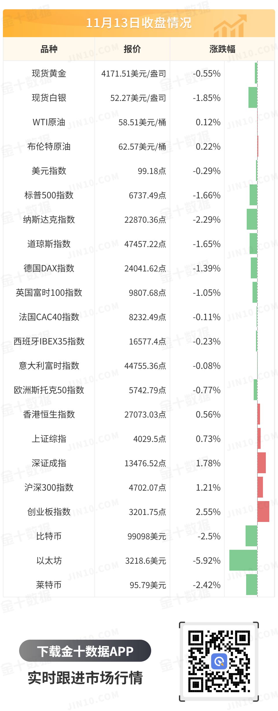 现货黄金先涨后跌,其在美盘前一度冲上4240关口上方,但随后急速下行并回吐日内全部涨幅,最终收跌0.55%,报4171.51美元/盎司;现货白银最终收跌1.85%,报52.27美元/盎司。
