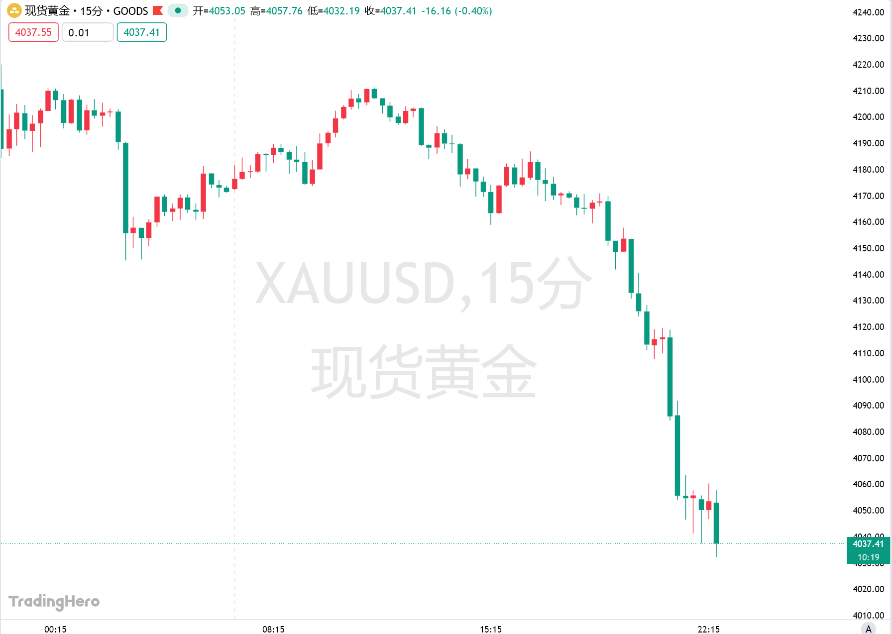 国际现货黄金盘中最高4211.06美元/盎司,随后持续下挫,美盘跌势再度加速,一度逼近4030美元/盎司,日内跌超130美元,跌幅超过3%。现货白银日内大跌4%,逼近50美元/盎司。纽约期银日内暴跌6%。