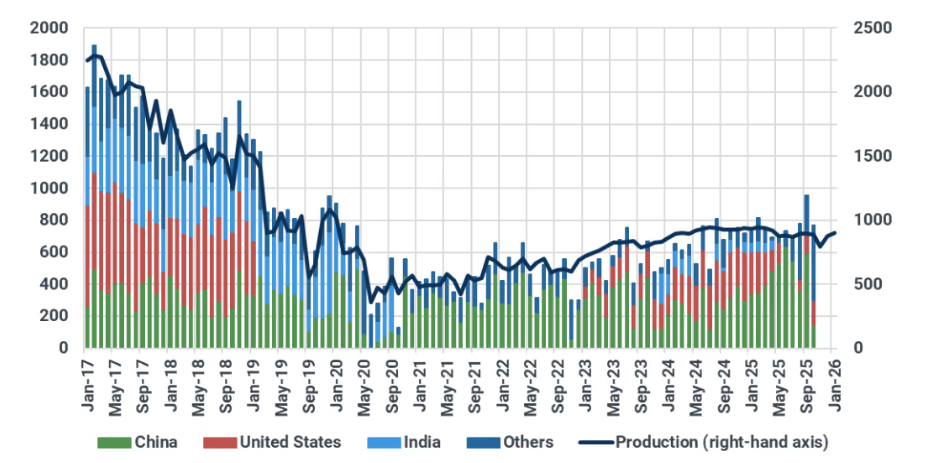 根据OPEC上周三发布的月度石油报告,委内瑞拉产量从2024年的约86.7万桶/日小幅上升至今年第三季度的约94.5万桶/日。然而,美国能源信息署(EIA)数据显示,与五年前估计的320万桶/日相比,这大约下降了70%。相比之下,OPEC最大石油出口国沙特第三季度石油产量为970.5万桶/日。