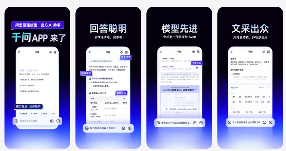 千问APP依托Qwen系列大模型打造。Qwen自2023年全面开源以来,性能超越Llama、Deepseek等国际开源模型,全球下载量突破6亿次。