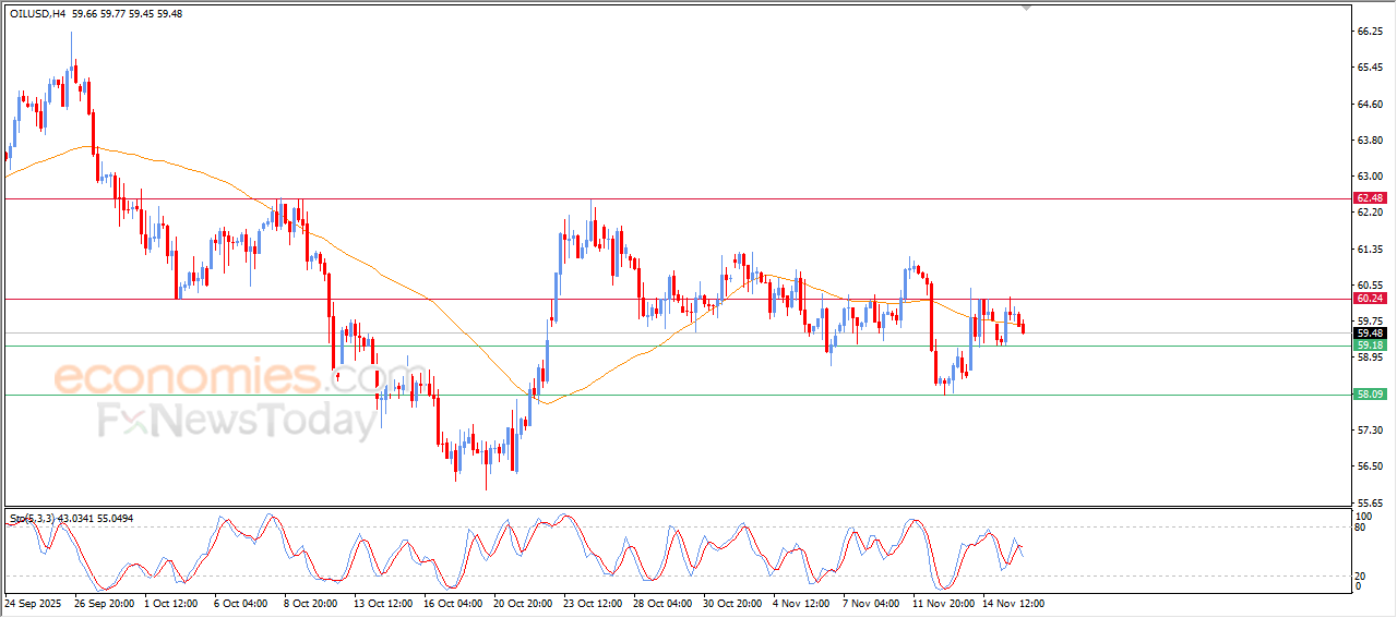 Economies.com的分析师今日最新观点:WTI原油期货价格小幅下跌,继续在其50日指数移动均线(EMA50)附近的窄幅区间内波动,形成了一个中性交易区域,使得短期趋势依然不明朗。这反映出市场处于观望状态,等待出现真正的推动因素,以促使价格反弹或重新走上下行轨道。只有当价格突破当前区间后,下一步的趋势才会更加明朗。