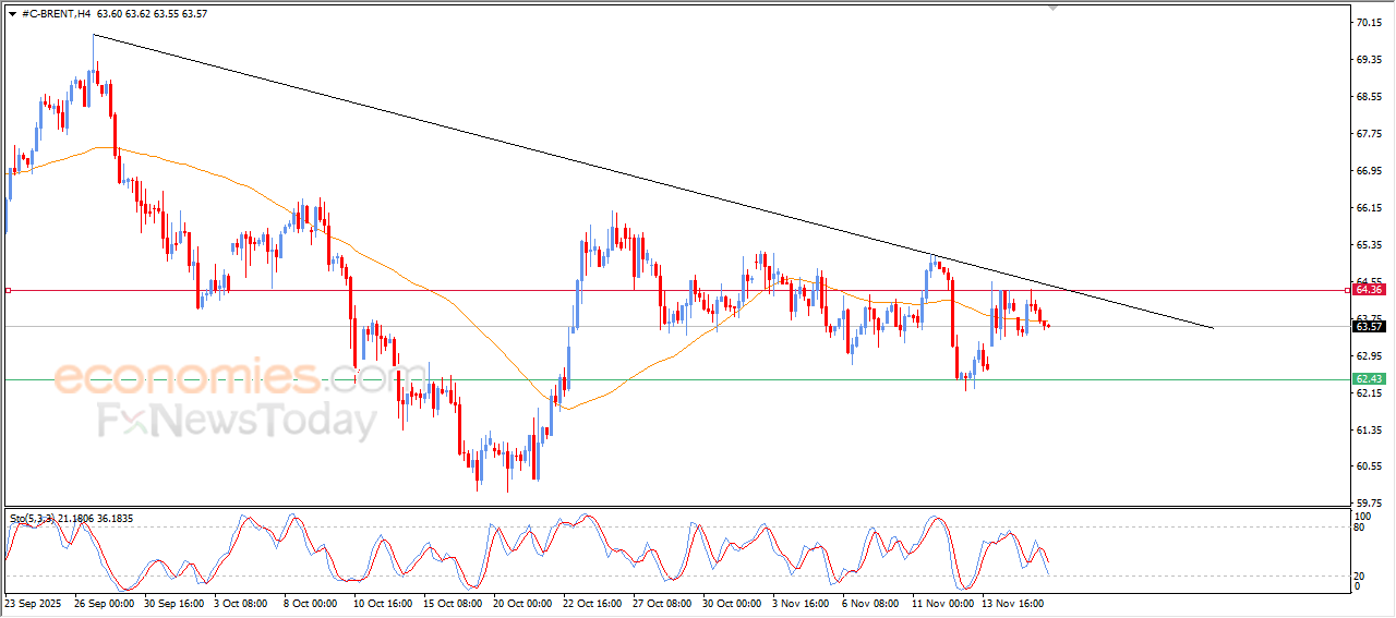 Economies.com的分析师今日最新观点: 布伦特原油期货价格出现下跌,短期内主要空头趋势占据主导地位,且价格沿着该趋势的支撑趋势线运行。与此同时,相对强弱指标(RSI)在触及超买水平后出现负面信号,价格跌破其50日指数移动均线(EMA50)支撑,进一步增强了短期内价格下行的可能性。