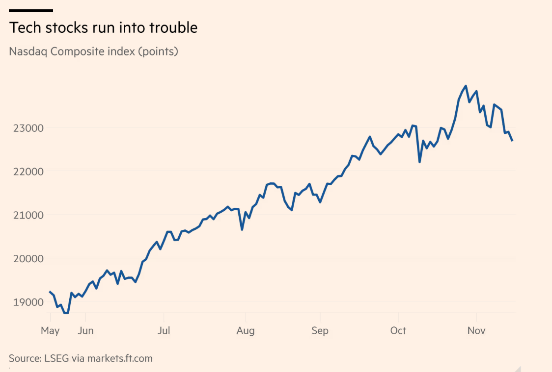 AI基础设施开发投资的激增,是今年美国科技股创纪录上涨的主导主题——芯片制造商英伟达(Nvidia)上月成为全球首家市值突破5万亿美元的公司——但近期市场对这类支出可持续性的担忧升温,已导致华尔街股市出现回调。