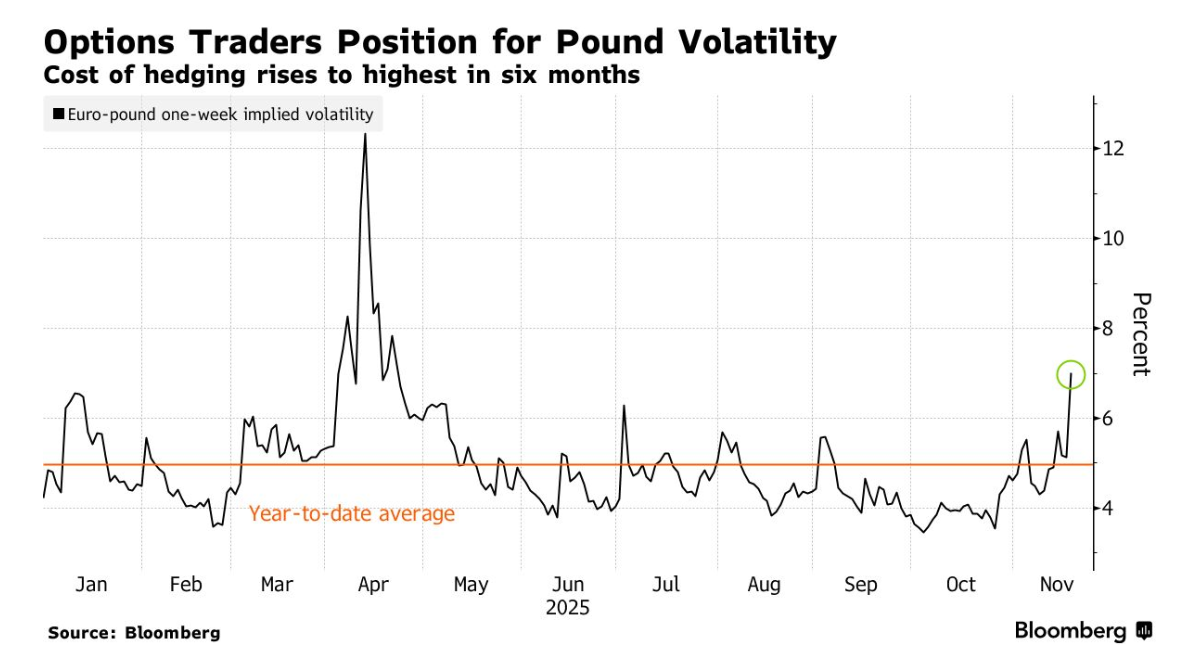 交易员正在为英国秋季预算案公布前夕,支付更高的成本以对冲英镑的波动风险。