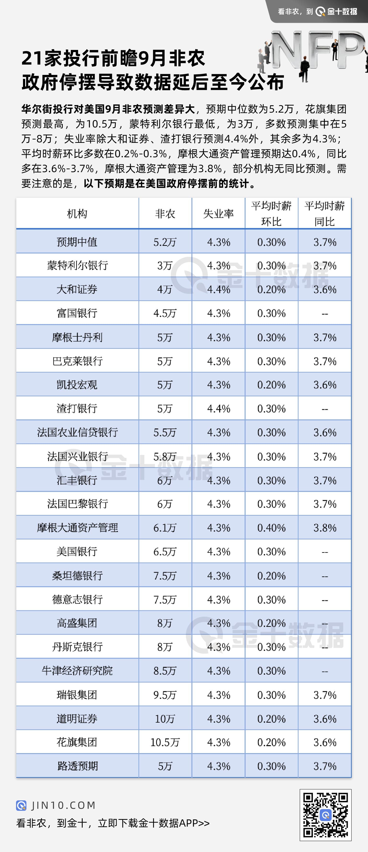 2小时前 21家投行前瞻9月非农,政府停摆导致数据延后至今公布
