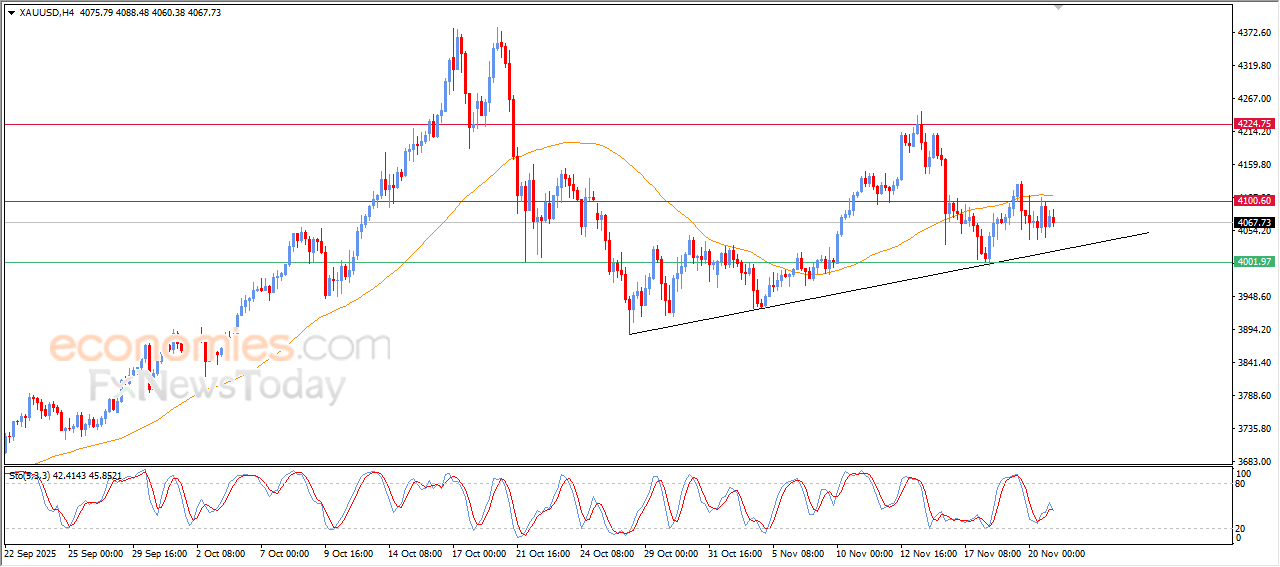 Economies.com的分析师今日最新观点:现货黄金价格盘中出现下跌,主要由于价格持续运行在EMA50均线下方,带来持续的负面压力,这表明多头动能依然疲弱。此次下跌还伴随着相对强弱指标在脱离超卖区域后重新释放出负面信号,使得空头在短期内掌控了市场走势。