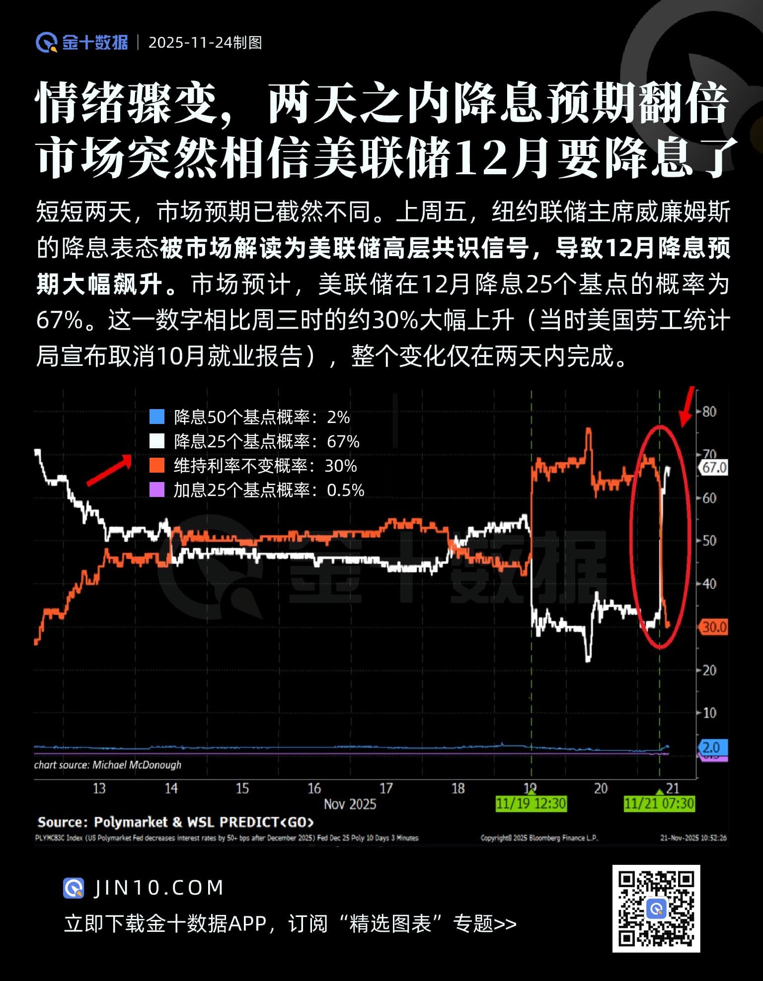 32分钟前 情绪突变!市场突然相信美联储12月要降息了