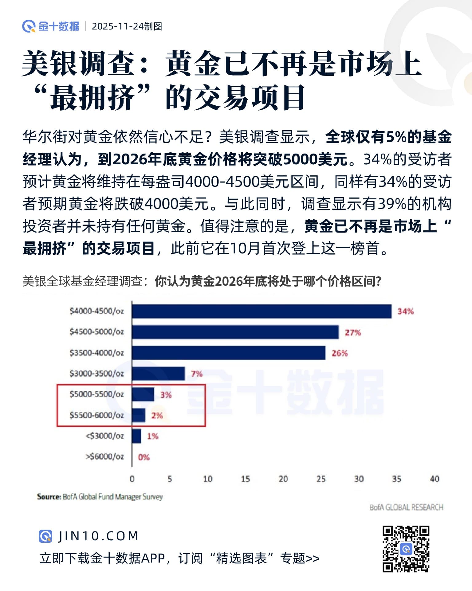 1小时前 美银调查:黄金已不再是市场上“最拥挤”的交易项目