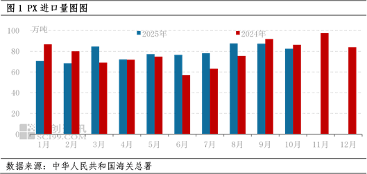 市场担忧进口PX可能减少,主因是美国调油利润偏好,韩国芳烃持续出口美国,导致韩国出口中国的PX数量可能下降,11月1日-20日韩国对中国的PX出口量较10月同期下降约2万吨,利好PX市场。另外部分市场人士担忧日本出口中国的PX减少,2025年1-10月日本出口中国PX130万吨,如果日本PX供应减少,将推涨PX行情。