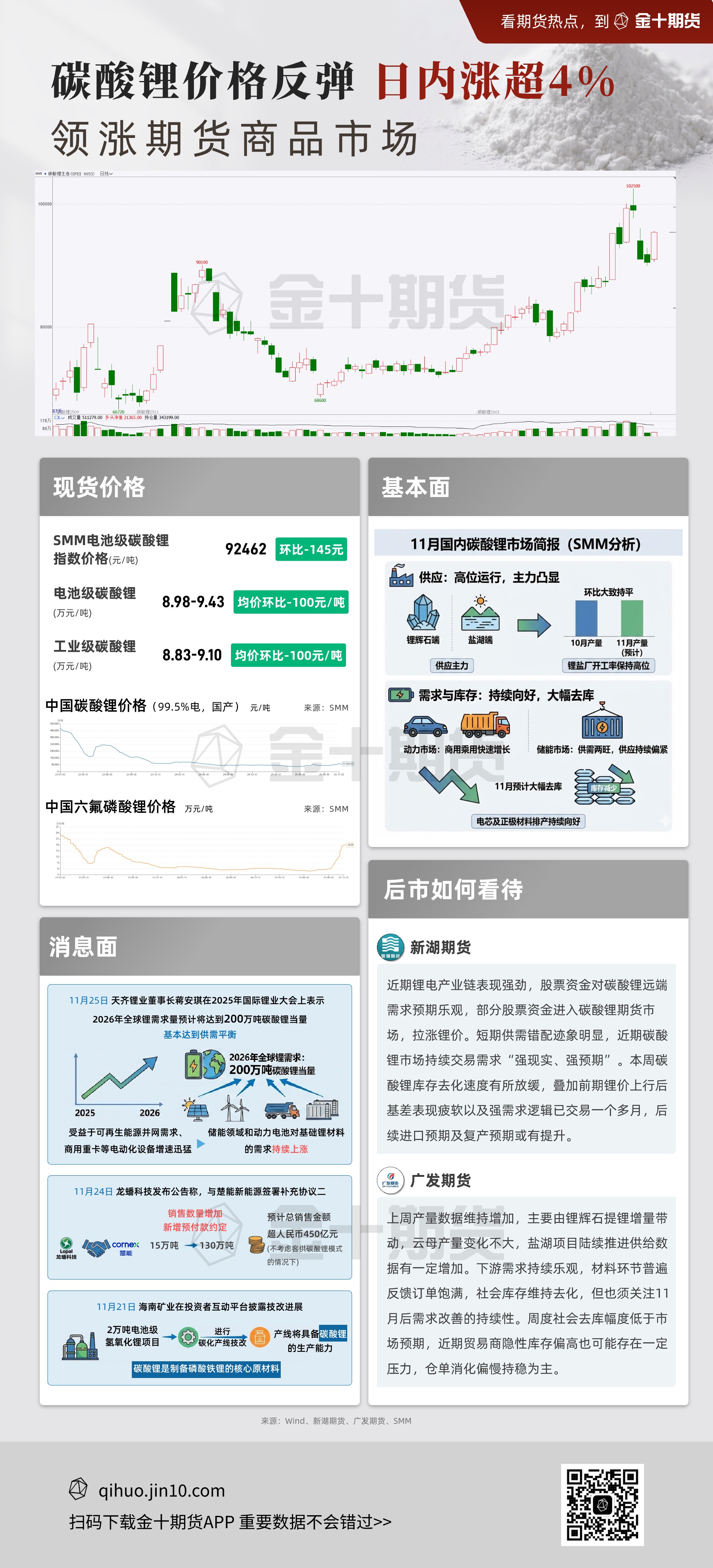3小时前 2025年11月26日金十期货早餐(周三):天齐锂业预计全球锂需求量2026年达200万吨碳酸锂当量